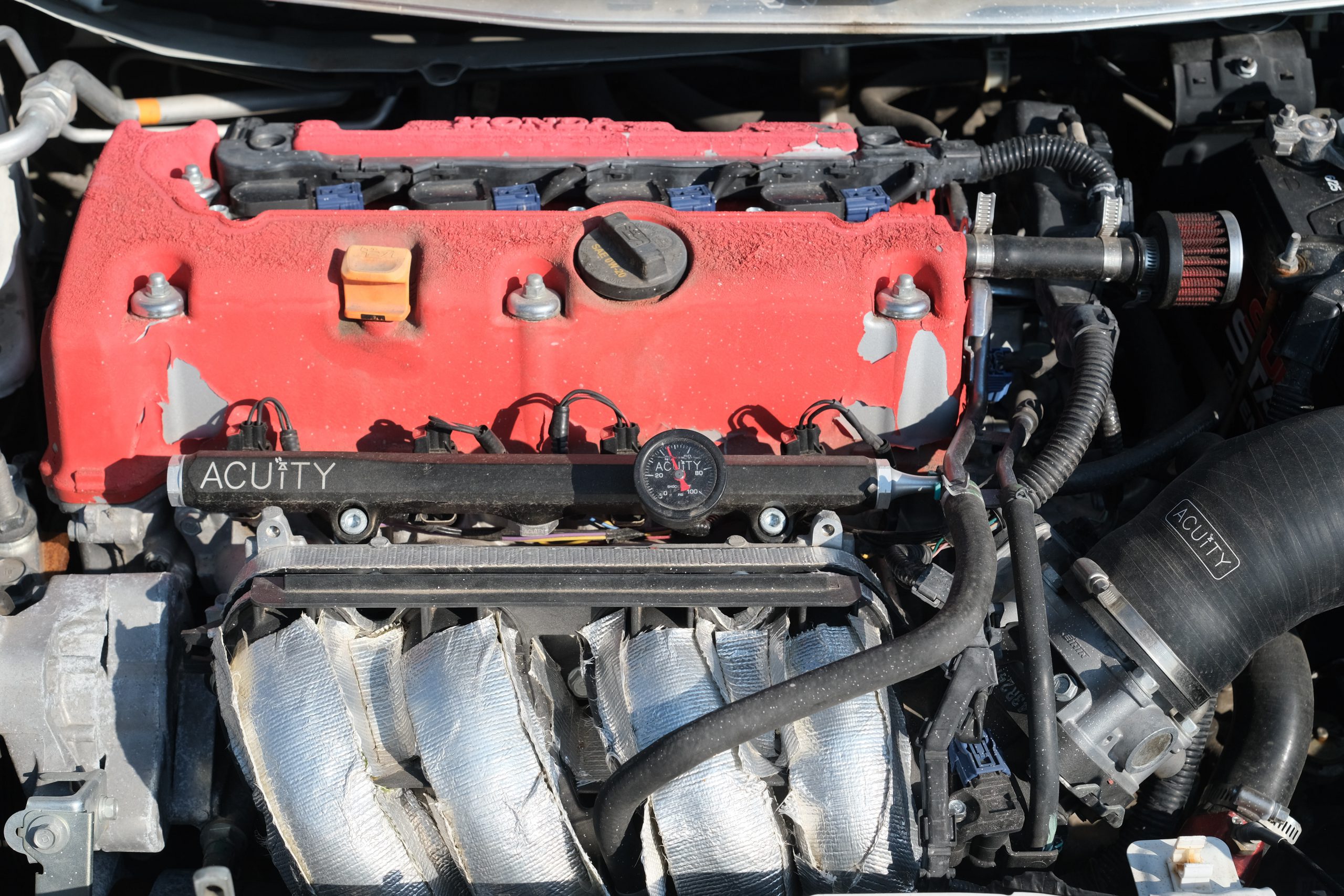 K24 with full bolt-ons, upgraded injectors and set up to run E85 (has ethanol sensor and runs great on pump gas).